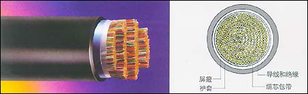 屏蔽:在一根鋁帶(鋁帶厚0.2mm)的兩面都涂以塑料,鋁帶沿縱向包在纜芯上,包帶要重疊,重疊處大于6mm。