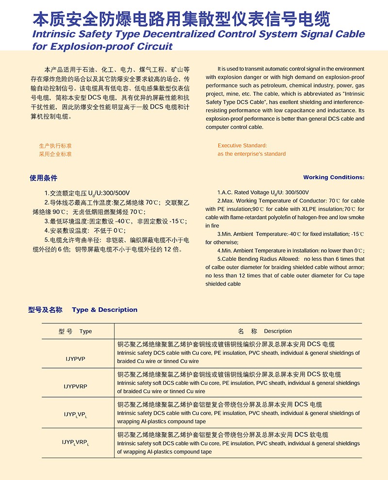 本質放心防爆電路用集散型儀表信號電纜